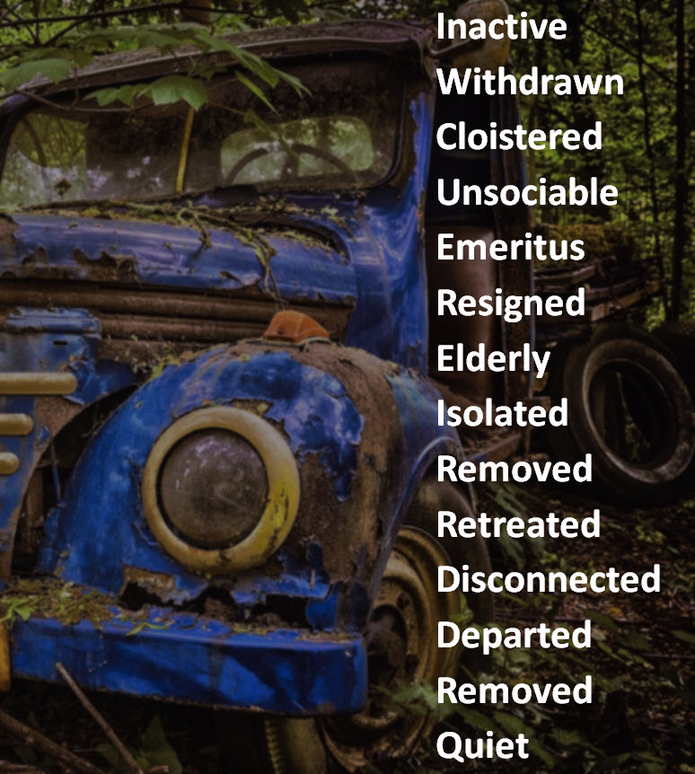 RETIREE: retirement is a period of joy, of jubilation, and of jolliness! And yet the connotations of the word retirement seem to be almost entirely negative, depressing even, as we explored in the past. Just look at the synonyms we detailed in that post for retired (to the right). Ouch! No. Make it OUCH! It boggles the mind, how did the word “retired” get such a bad rap? Janis pointed out that in Spanish, it’s “jubilacion” which sounds, she said, just like jubilation, and that sounds just about right to both of us.