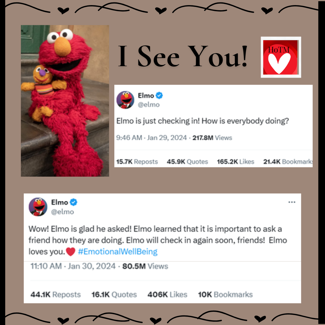 The wide reach of Elmo’s tweet suggests that we aren’t asking each other often enough, “How are you doing?” Thanks for the timely reminder to check in often with the people we love. 🥰