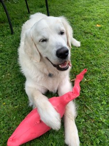 Cooper the dog (a one-year-old puppy in a big dog body), has been having some GI problems. Was it the yellow colored pencil he ate? Or the sunscreen? Maybe the head of the pink flamingo from the yard? The combo of a young dog and young children means no end to the possibilities of contraband to consume.
